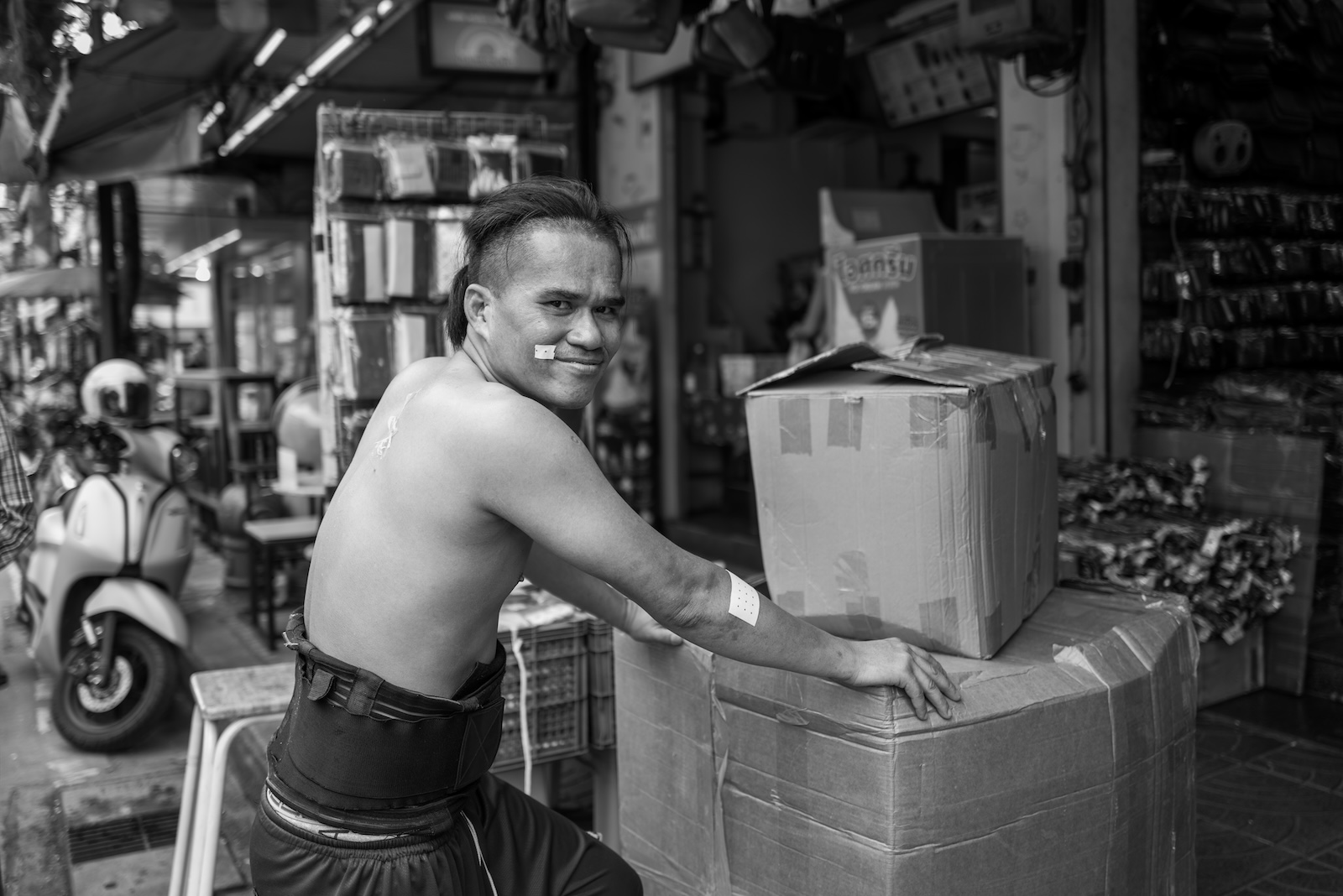 Before I realized it, I found myself returning again and again to Bangkok’s Chinatown, drawn to the figures of the “carriers.” These are people who make their living through the humble, everyday work of carrying. There seemed to be a unique sense of kinship among them—one that, in a way, also set them apart from the rest of society. They blended into the city, yet somehow remained slightly out of place.